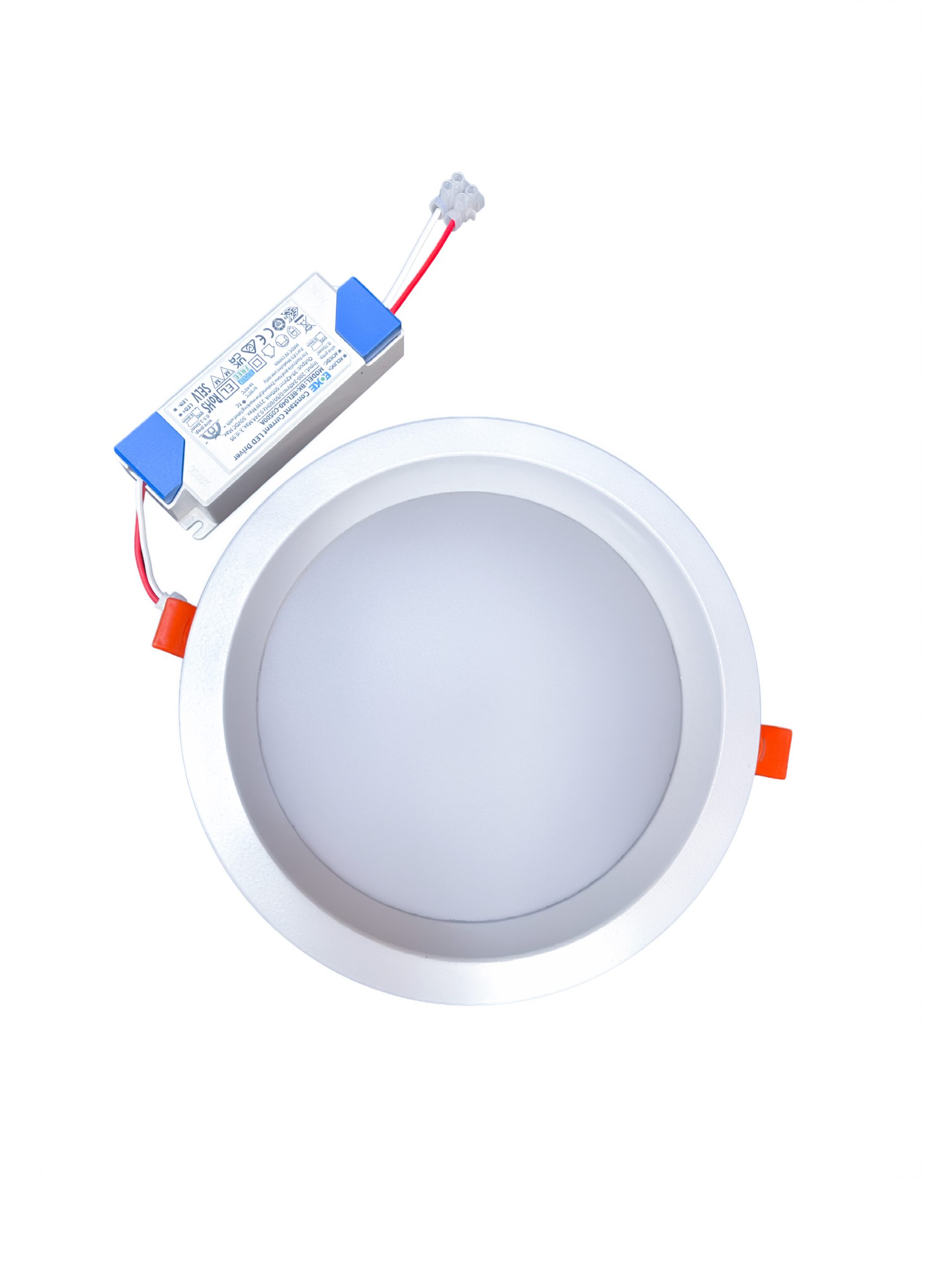 Equipo tipo SMD LED. Foco embutido, ideal para interiores, fabricado en chapa metálico, pintura poliéster electroestáticas con curado al horno. Difusor de acrílico opal. Vida Útil: >70.000 hrs.