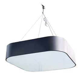 Equipo tipo LED. Luminaria colgante o sobrepuesta decorativa, ideal para instalar en interiores, terminación en pintura poliuretano. Difusor de acrílico, cables de suspensión de acero. Opción a otras medidas a pedido.